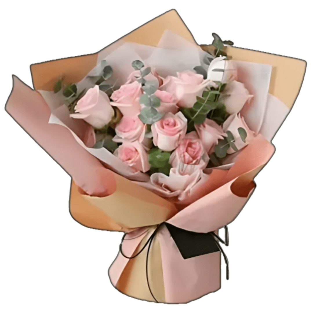 Elevate the moment with our exquisite bouquet of 10 Pink Imported Roses with eucalyptus.  Approximately 12 to 15 inches in length. Perfect gifts for mother’s day, birthday, anniversary, love and romance, gift, occasions. Order now!