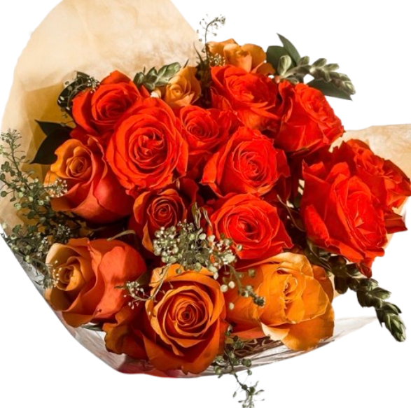 Bright, bold, and beautifully soft — this bouquet blends the vibrant energy of 5 orange  and 5 red roses with the gentle elegance of pastel orange blooms. Symbolizing passion, warmth, and new beginnings, it’s perfect for celebrating life’s radiant moments.